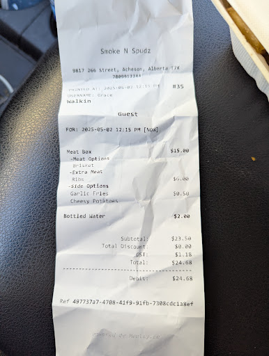 Read moreWe used to come here all the time when it was Smoke and Ash. When Kelly sold, we had high hopes that the quality would be the same. Unfortunately; they have steadily gone downhill since. Against our better judgements, we have given it about three tries since the changeover and each time has been consistently bad. The meat has the essence of flavor without actually having flavour; the ribs still had the silverskin on it and the brisket was so fatty it was more fat than meat. Don't get me wrong - I love a good fatty brisket but this was too much. The beans were hard and gritty from the brown sugar not having enough time to cook down and the cheesy potatoes tasted like the smell of the potatoes that have been sitting in a cupboard for so long that they're starting to turn.