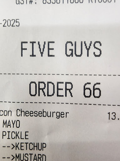 Read moreWhen an especially deserving department at our RV dealership was gifted a burger lunch we knew we would call Five Guys Airdrie. They answer their phone immediately and are eager to accommodate all your requests. Whether you have dietary preferences, allergies, or specific requests, they go out of their way to cater to your needs. It's also evident that they understand the value of your time. On our recent visit, our order was ready exactly when I arrived to pick it up, the fries were coming out of the fryer as I entered the restaurant. Each burger at Five Guys is a masterpiece. The patties are juicy, the toppings are fresh, and the buns are perfectly toasted. In summary the ordering and execution of your burger lunch at Five Guys Airdrie is seamless and they make it oh so easy. Thanks to Rachel and the gang at Five Guys Airdrie – we will be calling you again when mouthwatering burgers and great service...