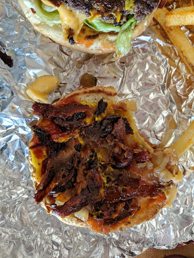 Awesome customizable burgers, I had the bacon cheeseburger, medium Cajun fries and bacon salted caramel milkshake. Everything was amazing in taste and size! The standard burger is 2 thick patties (they have Little size which is one patty), juicy and adding to the bacon and American cheese (2 cheese slices) I filled it with tomato, lettuce, onions, BBQ sauce, mayo and I dipped it in a side of gravy, barely able to get it in my mouth, it was huge! The Cajun fries had filled their container AND half the bag, the seasoning was delicious and the fries crisp and soft inside, yum! The milkshake was also customizable, standard in size but huge in taste. I made bacon and salted caramel, next time I'll add peanut butter and see what happens. It was pricey, $30 with tip but I could only eat half of my dinner so took the rest home for dinner the next day. I'd pay that any day when I get 2 dinners from that with that hugely delicious taste. So glad I didn't go to McD's like I had first planned. I would have got half this meal size for half the price and with half the taste if I was lucky. To me it's well worth the higher prices to get double the good.