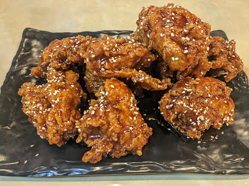 Read moreEdit: I've been coming here regularly for over a year, and the quality has gone steeply downhill in the last couple of months. For our most recent visit(today), I was left extremely disappointed by the decline in quality of service and of food. Let me elaborate. We were eating in, and when we chose to just have water, we got a small glass of water each and no bottle to refill our water from (they gave us one on the previous visits), so after eating spicy chicken we were parched. Additionally, the servers haven't checked in with us other than to put ordered food at our table. As for the food, it was even worse - the Korean noodles my sister loves to order have become completely unrecognizable. At first, you'd get a tasty spicy broth, tasty noodles, different seafood, fish cakes, egg and cheese. Now, we've got watery broth that's not even spicy anymore, plain tasting noodles, NO seafood at all, and no cheese too! Even the fish cakes are sliced thinly... The dish tastes nothing like it did originally, watery and not good at all. Also I often get spring rolls, and this time they were very dry, a huge disappointment. At least the chicken still tasted good, but from several months back the restaurant stopped providing complimentary pickled radish to the chicken and now it's priced for 2 additional dollars, so that was another letdown. In conclusion, the more I come here the worse it gets so not sure I'll continue coming here anymore. A huge disappointment and I can't recommend anything here other than fried chicken (maybe as a takeout, because the service wasn't very...
