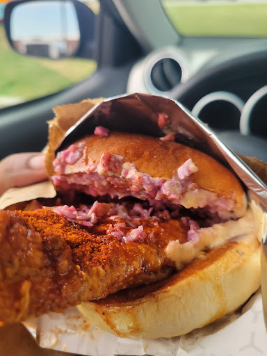 The rowdy sandwiches... very good! Worth it imho to get the big rowdy, it comes with coleslaw and is noticeably larger. Hot honey was not spicy... not even slightly.
