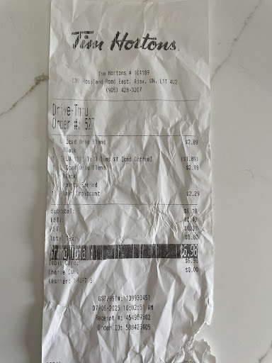 After that ordeal we drove to another Tim Hortons location at Harwood and Rossland. We saw an Uber driver waiting in line with customers. We then asked an employee the guidelines for Uber pickup orders where we were then informed that Uber does not get line bypass or priority over other customers and they must wait in line like everyone else.