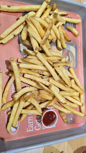 Read moreThe food was good, especially the onion rings, but my teen burger was a bit overcooked. The taste was fine, but being overcooked, it was a bit dry. It was a busy day since we arrived around 12:30pm, and the tables were not cleaned until we asked, but the staff were super friendly and responsive, and even clued us in on some special deals that were upcoming. Like I said, it was super bust, but the staff were trying their hardest to get everyone served quickly, efficiently and with a smile and an apology for any wait. The dine-in seating isn't super accessible, and the outdoor dining space is right by the drive-thru order board, so not great as you get to breathe in fumes from cars while eating. Overall, not a bad dining experience for a fast food place. I hope...