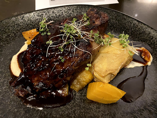 Read moreThis was my husband's and my first visit to the hotel and the restaurant and it has been a wonderful experience! When we were first seated the table was a bit wobbly so they moved us to a much nicer table by a window. The food and drinks were delicious and the portions were huge! My husband says the bison burger is the best he's ever had and my steak was perfectly cooked! Our server really made the whole experience so much better. Gilbert is a gem! He was so sweet and quick to bring out our order. When we said it was our first time here he told us all about the spa, as well as the huge fire they hold every night where we could sit and make s'mores. He also pointed out an amazing path that took us to the prettiest view of the mountains and the river! We will definitely be coming back for our next holiday and I hope we get the pleasure of having Gilbert...