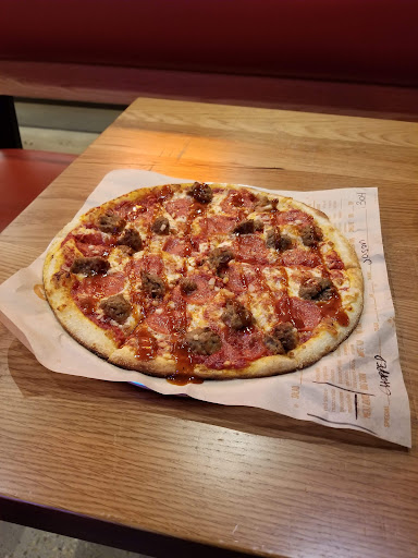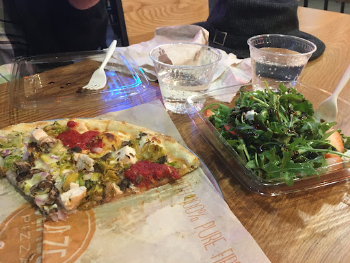 Read moreThe whole schtick with the place is... it's subway but with pizza. Fresh dough, pick a signature pizza or make your own, work your way through ingredients and add ons, and they cook it in a fire oven and call you when it's done. Thin crusts which hold up to the ingredients and stay crispy! I loved the $14 meat eater pizza, and I should, cause I customized it with garlic instead of onions and bbq sauce finish. If I didn't like It, would it be my fault? They did a fantastic job of decorating and I like the eating area, except for one thing. The tables are not movable and are waaaaay too close to the benches in the middle of the eatery. This will piss some people off. Also, napkins shouldn't be hidden in the corner by the fountain pop, no one goes there to pick up their pizza. Put them with the pizza or on the tables please. Also, you don't get a choice of size, they are all 11" pizzas. But I can say it's enough for my appetite and they do have extras like salad and cookies if you need more. They also beer and wine. Overall I was pretty happy with Blaze Pizza and will definitely put it into my rotation of places to eat in...