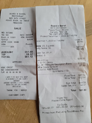 Read moreDuring my recent visit to Board'n'Barrel on December 1st, my overall experience left much to be desired. Although the crispy brussels sprouts appetizer was a highlight, the evening quickly took a turn for the worse.