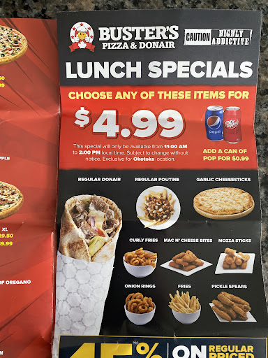 The delay was frustrating but not earth-shattering. The other customers who we saw facing long delays, lost orders, and frustration that caused them to leave and look for somewhere else to get food for their family certainly heightened our concerns. This is a bigger issue than just a one-off that affected us tonight. And then the screwed up and inadequate product they finally gave us sealed the deal. Weāll be avoiding Busters in Okotoks. Lots of great pizza and other restaurant options in Okotoks that Iām very...