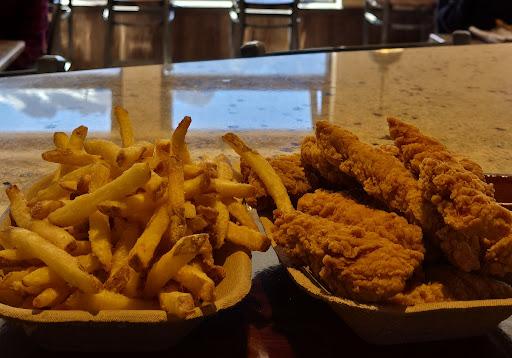 I had the chicken fingers and fries, which were, in the most generous terms, serviceable. Think theme park cafeteria circa 2006âedible, but no oneâs writing home about it. The pizza, Iâm told, was actually better⊠though âbetterâ is doing some heavy lifting there.