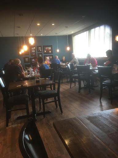 Cute, little (7 tables) quiet, modern diner-like restaurant with gluten free options (pizzas and buns). I had the chef salad(with real roast turkey, not deli meat) with olive oil and lemon for dressing. My kids enjoyed their quesadilla and pizzas and my husband, his taco salad in the edible bowl was as expected. Generally, more than what was expected from a little town's diner. The lettuce was fresh and considering their options, it showed they work on keeping up with popular pub bites yet keep a small town place to have a steak and a piece of homemade pie feel. The Neilon pub beside seems to be more hoppin and they serve...