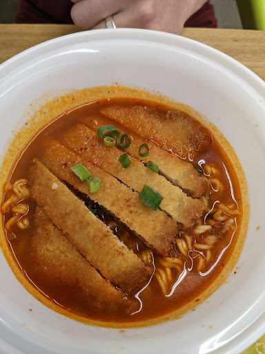 We opted for the bulgogi ramen, pork katsu ramen (add kimchi) and plain dduk bo kki. All were nicely spiced, a little on the sweet side but still hot. The pork was breaded and surprisingly held up well in the soup, it absorbed the broth but didn't fall apart. We also got a little cup of pickled daikon each which was really nice!! Everything for 2 people was about $30.