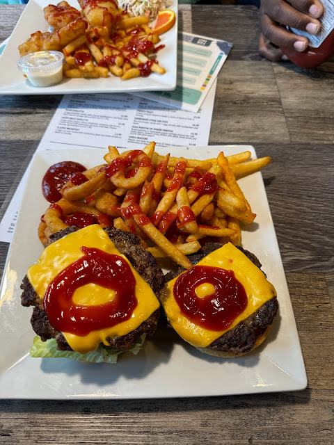 I have never left a restaurant wishing I never came in before. Iâve also never not left a tip before. I prefer to try the local restaurants instead of going to fast food⊠but this time I wish we went for fast food. It took over 50 minutes to receive our food, and yea it was busy and we are able to wait - but if Iâm waiting that long I am going to hope the food was good. Even our drinks took 15 minutes to come, and they all didnât come together. One of us had to wait another 7 minutes for theirs. My water? Didnât come for half an hour. Our daughters kids meals were decent and they were happy to eat the scrambled eggs and pancakes. The only reason I have given two stars was because of that. Their meals were edible. My husband got the ooey gooey grilled cheese and was disappointed. Even his fries werenât very good. I had the fish and chips, it wasnât fresh. It was definitely from your regular frozen food aisle. My husband ate my âsaladâ and said the olive was gross on it. I really only could eat the fries, I ended up spitting out the rubbery fish and stopped eating it. No one came to see how our meal was. We had one napkin for the whole table (with two young children). We couldnât get the attention of any of the staff to ask for more. The staff was literally running inside and trying to clear tables. I get they were busy, but it seemed so chaotic with the running. Disorganized. I read the reviews and I hope our visit was a one off - but I definitely will not be going out of my way to come back to this establishment.