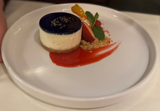 Dessert was a showstopper. The whipped lemon lavender cheesecake and orange blackberry panna cotta were light, refreshing, and the ideal ending to an unforgettable meal. Paired with an espresso martini for him and a virgin espresso daiquiri for me, it was a true chef’s kiss.