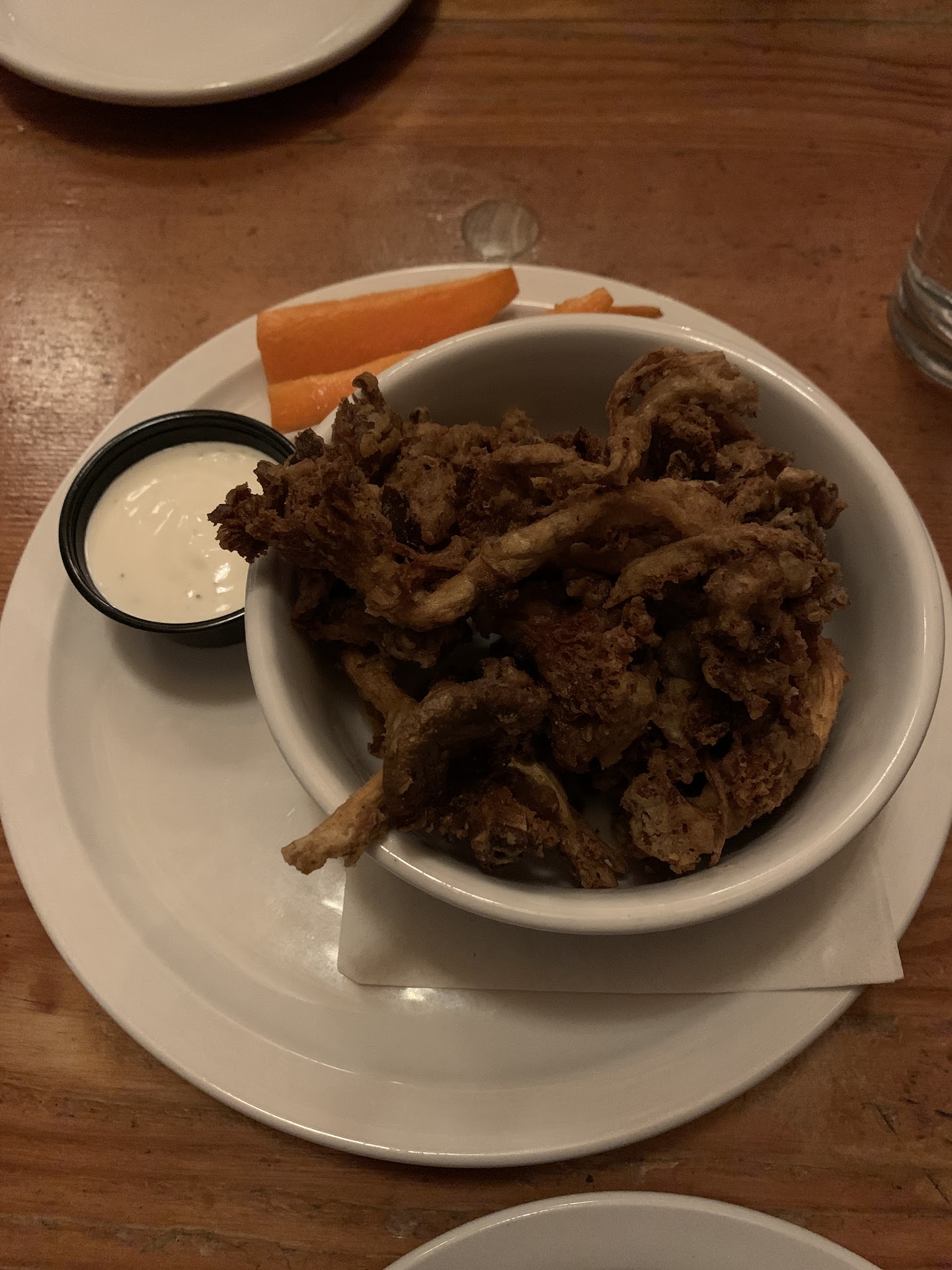 The main reason for the low low rating which is very disappointing, and would have taken maximum 1-2 minutes to rectify by the chef. The food (starters & main) came promptly and we were not left waiting for long which was great, despite lockdown. We started with the southern deep fried Mushrooms which were very nice. However, from here it went completely downhill as the turkey was dry, worryingly sections of the turkey were actually refrigerator cold, another section hot, and another section room temperature. These were not thick pieces of meat or overly large cuts so the large difference in temperature are very concerning. And on reflection I do not think these pieces of meat would’ve passed food safety standards. Moving onto the cranberry sauce that also was extremely cold which is fine if the meat had been hot it would’ve complimented nicely. The roasted vegetables unfortunately, tasted like they were roasted however again a complete mix in temperature from refrigerator cold to been warm and edible. The cornbread was enjoyable however, I am not a connoisseur of cornbread so I’m not the best person to decide on what makes good cornbread ha ha ha. And the mash potato was out of this world which was truly the highlight of the meal which was very unfortunate as it was the only thing on the play that was hot.