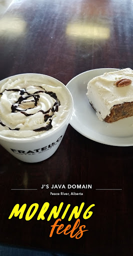 Ok!! This place is real.... For 3 years I have driven the 2 1/2 hrs for the coffee and menu here! As a lover of unique cafes I was delighted to find this little gem! With quality of service from the staff first and foremost, true creative yet traditional passion delivers a delightful experience and it starts with the ownership/management team reflecting in every fibre of the space, the items on the menu, the delivery of service, the folks that frequent, and the pure love and quality of everything, especially ingredients!!! The space is welcoming to EVERYONE! A true experience. A landmark in the Heart of the Peace. Must stop in for breakfast, lunch, coffee, dessert, ice cream with the family, peaceful focus to yourself, smoothies, connection, treat friends , give thanks with a treat tray to special ones you care for, take it to go or stay a while! The options are nearly limitless. There is a beautiful path along the river to explore the Mighty Peace. A bridge for beautiful photos. A water park across the road. Go for a walk/run and end up here for your hydration and or salad! J's Java Domain is a vital start and MUST to my daughter's "Mommy & Me" dates. We get our drinks, our lunch with a little treat taking it to a new location to eat together over the views. Truly the heart of the Peace at J's Java Domain. Stop in, make the drive, its worth every moment, bite, sip, memory! Phone for hours due to current events is probably recommended if you're like me travelling for it. Wishing you all at J's Java Domain the very best! Thank you to the staff for showing up each day to make the experience worth talking about locally, nationally,...