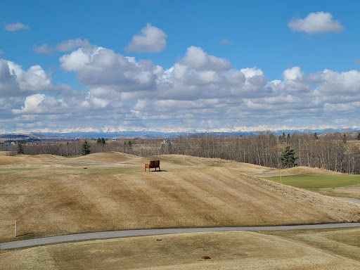 Neither of us are golfers, and while we enjoyed watching golfers tee-off below us, the view of the mountains really made the day. They have a large deck we didn't try (it was 1 C outside), but will try it...