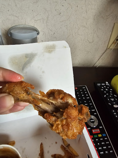 After getting to the hotel we realized we had soggy and doughy chicken. No coleslaw x 2, and no gravy.