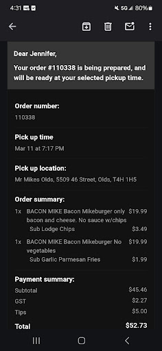 Read moreAbsolutely horrible!!! Ordered dinner for pick up at 5, picked up at 530. Got home and it was missing my daughters meal, so we called and they said it would be delivered. I give them specific directions as my address doesn't show up proper in google maps. Waited 20 min (we live 5 min away) I called them back and they said they needed to confirm my address.... I give them directions again to my house and wait another 20 minutes... They call me and tell me they need to confirm my address yet again and that it is not correct. Again I give them exact directions and ask if they will be sending a new order since it had been over an hour at this point and the food would be cold. Another 20 minutes and we finally get the food, I had asked for a refund at this point which they gave us 20 bucks for the one burger. Daughter opened the bag and no side with the burger.... You're kidding right! So I call back again, manager will have to call me back. Another 30 minutes later I get a call, she said oh the side must have been in the first bag you picked up.... It was not.. The other burgers came with the side in the same box. Then I was told it shouldn't matter since we got the 20 dollar refund (our bill was $81) so no side, no apology and over 2 hours of ridiculousness. The manager didn't not seem to have a care and was fine with losing our business, which she certainly did!! Do Not waste...
