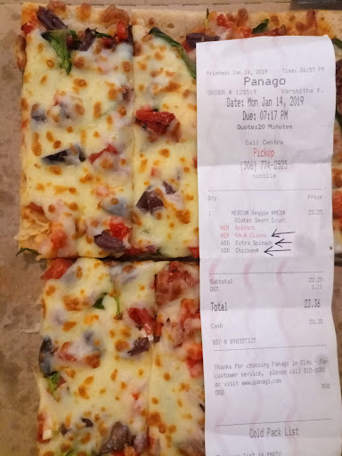 Read moreThis is the second time I have ordered since November. While I understand everyone has a bad day once in a while, I certainly expect a pizza that is consistent with panago style. Not the crap I have had the last two times I have been there. By the way where is the chicken that is to be in the chicken club? 6 pieces counted. Absolutely horrendous and I certainly won’t order from...