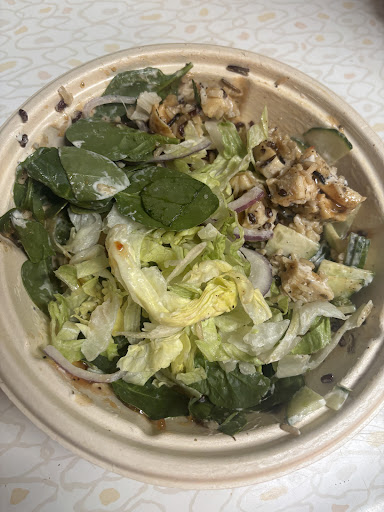The place itself is somewhat shabby - but whatevs, it’s just a quick fast food place right? Still, it’s unappetizing looking at brown water stains on the ceiling. Also, do the ceiling fans need to be so strong in the middle of winter? More importantly, EVERY table & seat was dirty and oddly crowded together. Both trash receptacles were full, not overflowing but soon-to-be. Womens/handicap bathroom (also where the baby changing station is) had a DIRTY garbage can with a lid that you have to MANUALLY lift up but they don’t have paper towels. Zero sense there. The garbage can should either be open/no lid or have a foot pedal. Or you know, be visibly clean at the very least.