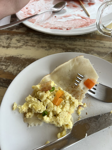 I was here a few days ago, 5 stars to the pistachio latte, it was actually really good and very aesthetic but I’m going to have to subtract 3 stars for the breakfast crepe I ordered. It’s very common for restaurants to be stingy but this one took it up a notch. I ordered a breakfast crepe which comes with bacon, egg, and cheese. Me being lactose intolerant I said no cheese and added vegetables instead which was a 1.30 (around that) up charge. WELL. When I got the crepe there were only tiny pieces of bacon which wouldn’t even add up to one strip of bacon, the vegetables were sprinkled on the egg I could count all of them, 12 pieces of pea sized vegetables. And it was so bland I went up to go ask for hot sauce, the girl at the counter didn’t pay me any attention so I made do with a pack of ketchup and sprinkled black pepper over it. Overpriced, no...