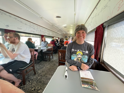 The owner/manager/main man graciously made the decision to allow us to come in as other guests had also recently arrived. We are so grateful for the kindness, and for how that kindness was carried on throughout the time we spent inside the diner, housed in a clean and beautifully kept dining car from the train era. Even the walk down the hall to the bathroom brought back fun memories.