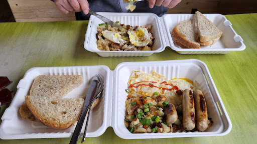 Read moreMy husband and I visited for lunch this weekend as we were staying in Canmore and the restaurant is rated quite highly (4.6/5). We had high hopes, but unfortunately they werenât met :( No signage about whether to seat yourself or wait to be seated (thereâs no hostess stand, so we werenât sure), no signage telling customers to order at the counter, and no staff member acknowledged us the whole time we were standing awkwardly by the door - finally another customer explained that you order the counter. When we did order there was confusion about the fruit side options: I asked for a âcup of fruitâ as the options on the menu are âcup of fruitâ or âbowl of fruitâ and the staff member taking the order replied with âso do you want the 6 piece or the 12 piece?â, even though the menu says nothing about 6 vs 12. Food was mediocre (the eggs tasted kind of weird and the hash browns were a bit under cooked). No one came to check in once we received our food to ask how it was. It would also have been nice to have more menu options that donât include eggs as thereâs currently only one eggless option (oatmeal) (my husband doesnât eat eggs, so we pieced together a meal with side dishes). The saving grace was the sunny outdoor patio and the fact that our food came quite quickly. Given our experience today, though, we...