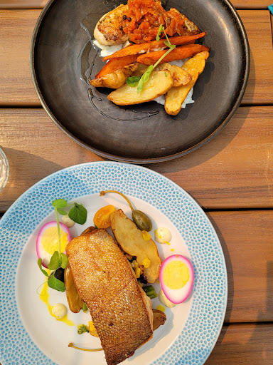 As we arrived we asked the manager, Sean, if there were any spots available and he replied saying we should set a specific time, over an hour from then. We then asked if there was anything immediately available (half the tables were vacant) and he reluctantly led us to the lower level patio which they clearly did not want to serve. Once we sat down, a waitress left us with the menu and water. We let her know we were debating grabbing something to-go from the restaurant’s cafe, which she said was fine. After reviewing the menu, which had nothing appealing to either of us, we let the waitress know we were going to go with the takeout option. She then rudely said “okay” and aggressively threw the water into the nearby bush. On the way into the restaurant the manager asked what we were doing and said we should have reviewed the menu beforehand (which was not laid out anywhere nor offered to us beforehand). After grabbing takeout I went to ask one of the other waitresses for the name of the manager and waitress... the manager then stormed out of the restaurant and said “can I help you, man?”.