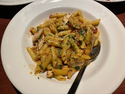 We arrived around 6pm and were seated quite quickly as there were not many other people there. Our server (from Jasper, forgot her name) was absolutely fantastic. She was warm, friendly, and welcoming. She was also quite energetic. We ordered the Surf & Turf (Christmas Special) and the Penne Lane. We also got the big Spinach Salad and later The Timberwolf Pizza. The Surf & Turf came with a 6oz steak, which was absolutely delicious and cooked a perfect medium-rare (the temperature we requested). It also came with four lobster craws, mashed potatoes, and asparagus. Overall a very well balanced and delicious dish. The Penne Lane was exceptional. The pasta was a perfect al dente and the chicken was tender beyond belief. The dish was just a tad creamy and beautiful all around. The Spinach Salad was very very well balanced with strawberries, goat cheese crumbles, walnuts, and some raspberry vinaigrette to top it off. Very delicious. The Timberwolf Pizza was cheesy and delicious, topped off with pesto, mushrooms, ham, and bacon. At the end, we were entirely full and satisfied, so much so that we did not get to try the very tempting apple pie.