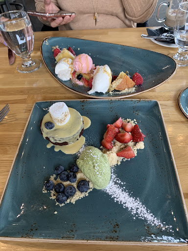 Read moreWe came here for a late lunch and this place was amazing! Delicious great presentation and an amazing view to boot. This place is set on top of Lake Louise so you have to take the gondola to get to this great bistro set on top of the world overlooking Lake Louise and surrounded by mountains and evergreens. The patio is huge and very inviting, inside is cozy and a nice casual feel to it. We started off with their Heirloom Tomato & Basil Salad with Buffalo Mozzarella, Quinoa, Sundried Tomato Pesto, Balsamic Reduction. Lettuce Wrap with Chicken in Coconut Peanut Sauce & Asian Slaw. Pork Belly & Scallops 48 hour cured, with Celery Root Puree, Confit Tomatoes, Fennel Corn Bilini & White Asparagus Espuma. All three of these dishes were excellent! Flavorful and colorful, the Quinoa had an amzing earthy flavor and the heirloom tomatoes were firm with a slight tartness that the mozzarella complimented it. I loved all the dishes served here, the only thing negative was that the portion was not filling. I was still hungry when i took the gondola down. This is a great place to eat if you ever have a chance and soak...