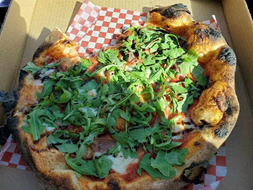 Crust is really well done, crisp and chewy at the same time, with a great taste to it. The problem with wood fire in my experience is that the crust (top and bottom) seems to burn before the pizza is truly done so the pizza has to be pulled out prematurely; no exception here. The perimeter crust ends up perfect but the dough that the toppings sit on ends up soupy and floppy even though it's paper thin. Also the cheese and pepperoni don't crisp up like it should and the more toppings that go on the worse it gets.
