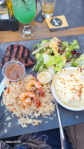 Read moreJ'étais souvent allée à ce restaurant par le passé et j'avais pris l'assiette Terre et mer. Quelle fût ma déception. La présentation de l'assiette ne correspondait pas du tout aux photos. Le riz n'était pas cuit, j'ai reçu 2 petites crevettes au lieu de scampis, un pétoncle cuit au micro-ondes, aucune vinaigrette sur ma salade et la grosse tomate au miieu à l'ail était absente. L'assiette ne valait vraiment pas le prix payé. Aucune musique. Je ne recommande pas...