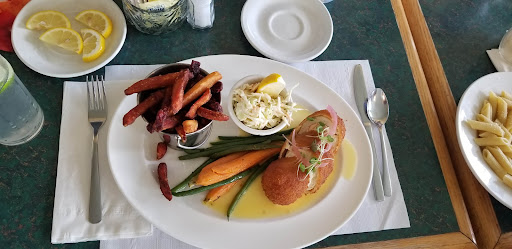 Read moreWe were driving from Peggy's Cove Nova Scotia to the Bay of Fundy and wanted to pick a spot where we could have dinner and watch the tide. We chose Alma and The Tides Restaurant to combine these two experiences and were quite pleased with the result. It was nearly a four hour drive, but we were able to view the Bay of Fundy for the last hour once we passed through Moncton. Route 114 is a pretty drive, and at one point the fog began to roll in and we thought maybe we had made a mistake choosing this location and that we would not be able to see either the bay or the road ahead. As it turned out, we rose up out of the fog and the sun reappeared just as we arrived at the quaint downtown area of Alma. The dining room is large with picture windows looking out onto the Bay of Fundy. The tide was out when we arrived so three large boats were sitting on the mud 30 feet below the dock. Our cheerful and helpful waitress delivered delicious food, pasta with seafood for me, and for my carnivore husband, a delicious rack of ribs. The blueberry almond salad was very tasty as well. As a bonus, Alma is immediately adjacent to the Bay of Fundy National Park, so you can explore the park after dinner and continue to...