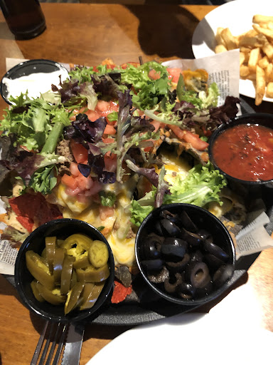 Wow… has been around forever but had never caught my eye. Went in for a snack with my husband yesterday for something different… we were pleasantly surprised the waitress was fast and friendly. The quesadillas came out hot and we’re very tasty and the sliders (3 - hamburger onion and jalapeño) were DEEEELICIOUS!!! Wine was not ridiculously priced as most restaurants and was a solid house wine, beer was cold and also reasonably priced. We enjoyed it so much we went back today for fries and nachos… hamburger, cheese, salad, tomatoes, on side jalepenos , sour cream, sliced black olives, salsa it was filling but came a little on the cold side and the salad was weird but tasted good. Though cold, it was still good AND the tortilla chips were fresh not stale like some restaurants use! All in all it was a nice place for a quick lunch. We will go back - hopefully next Wednesday and try the 2 for 1 wings!!! One tip if you sit by the windows and get cold easily, bring a sweater and a little blanket for your legs… it’s a little drafts.