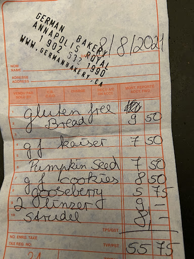 In visiting this place the first thing I took note of is no prices anywhere in the store. Red flag. Moving forward we ordered some bread and sweets. It came to 55 dollars and 75 cents. I got her to write a hand written detailed receipt which the clerk who is likely the owner had to write by request only. She charged really high prices. I paid 8 dollars for a left over slice of Apple strudel and 4.50 for a cookie with jam. Besides the outrageous prices the food was dry and I am not referring to the gluten free bread we bought that is always dry all of it including the bread that was not gluten free is dry old and as for price the gingerbread house in Halifax south end charges 4.25 for a slice of apple strudel and I could go on but roughly German owned gingerbread house Halifax charges half the prices this place changes. I had traveled to France and Italy and shopped for pastry’s in some of the most tourist dense areas and never ever was charged this high for prices. This shop is clearly taking advantage of people in such a greedy way. I had never seen anything like it before. She does it with a smile stay away as your going to get taken here. I would expect her prices to be on par with Michael Winga owner of the gingerbread house halifax. I was also his student in cooking school back in the 90's and worked as a cook for many years so I know a food scam when I see one. This place...