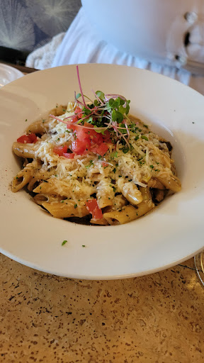 Food was OK. Honestly, if the bistro wasn't trying to seem upscale, we would have been more than happy with the food. I got the crispy chicken sandwich and the chicken breading was a bit dark but it was tasty enough for the price ($21). The fries were actually good despite the small size of them lol. Partner got chicken and mushroom penne... chicken was reminiscent of Subway chicken. Again, wouldn't be a problem if it wasn't touted as upscale. Sauce was decent, penne slightly overcooked. ($25)