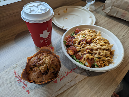 Read moreWell ,first of all you have woman working days and I swear if she smiled,I would faint.Some staff that works afternoons couldnt boil water and their super slow.Now the details.I was waiting a week ago on a Saturday evening for my Wife to get off work so I decided to come to this Timmy's to have a chicken wrap.Well ,it was burnt and the chicken was hard.In the Womans defense she got the bottle of coke right.Second visit...I asked for a large steep tea with 3 honeys and 2 cream.The woman got the 2 creams right and it taste like maybe one honey.Also both times they were not busy so why not do your best.My Wife worked for Timmy's in Ontario a long time so I now how it works.The machine has a bell on it so when it goes off,take the dam wrap out of the machine before it burns.I work retail and if I gave bad service like that I would be unemployed.I realize it's only minimum wage but at least try...