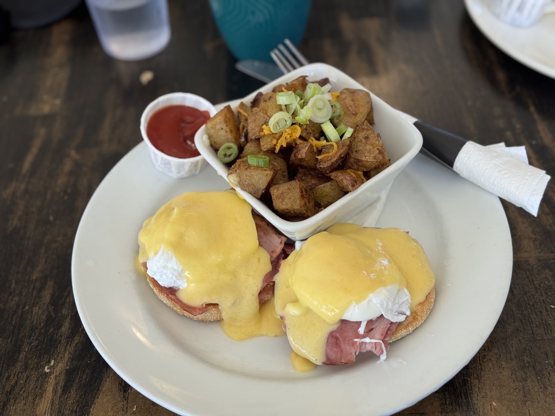 Those with a sweet tooth can find some scrumptious offerings to satisfy their appetite. I tried the French Toast Cinnamon Bun for my brunch. It was a plate of sticky, yummy, gooey, goodness... overflowing with a rich creamy icing sauce. Added to that plate was three pieces of the best bacon I've ever had at any restuarant, made to perfection. Guard that bacon your life, otherwise your companions may be tempted to snatch it from you (even though they have their own).