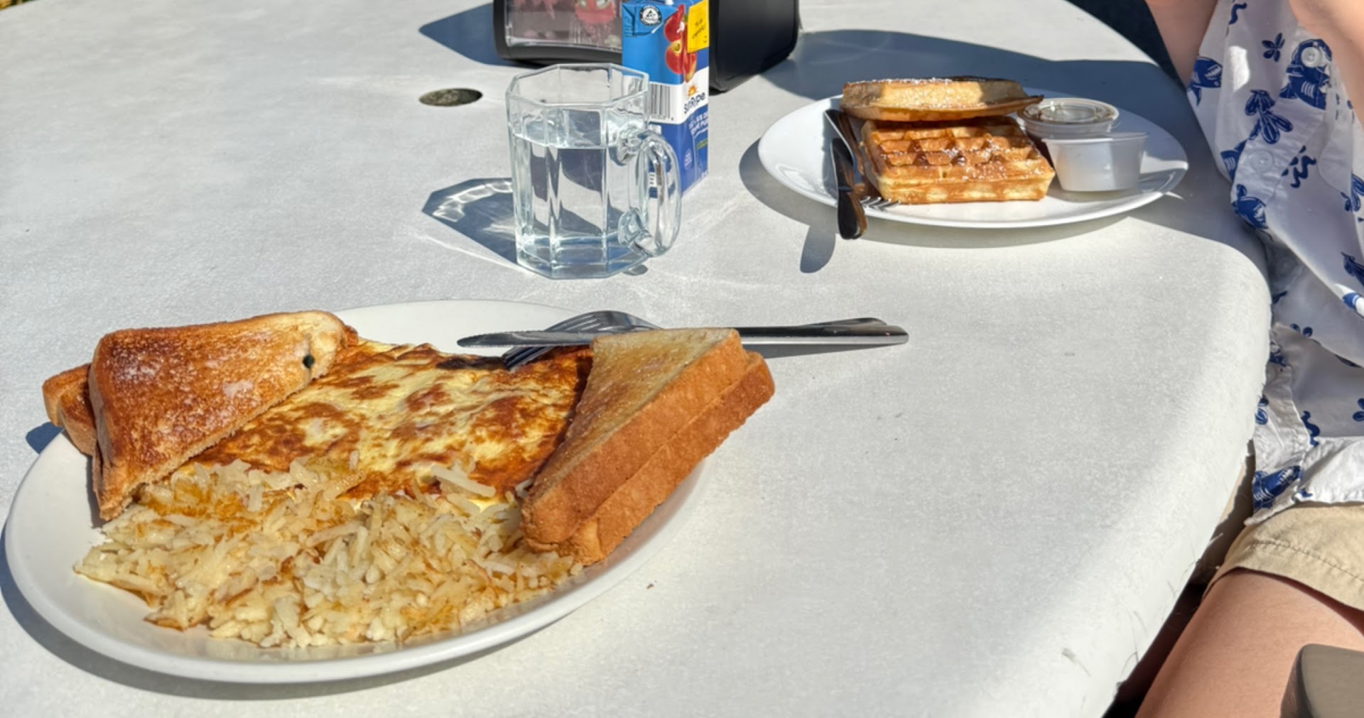 We regret to say that we were not satisfied with the service and food during our visit. The waffles were dry and hard, and my omelet was mostly just cheese with very little ham. Additionally, the water served tasted strange. We hope you can make improvements as well as the service. We felt like it was also overpriced.