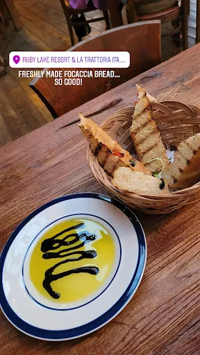Read moreI wish I could rate this place higher because it's such a cute restaurant in a beautiful location, but it was just such a disappointing experience. Firstly, I'd say it's only worth going here if you're seated on the patio. The inside dining area doesn't have the same charm and, at least when we were there, it has no AC, so we were all sweating. I think the staff forgot that we had been seated because it took a long time for anyone to come to our table. When someone did, she wasn't very pleasant and almost seemed upset with us for some reason. The second server that came to our table was quite nice however. Then there's the prices. I have never seen prices this steep for pasta. Literally, a simple Primavera is costing you close to $30 and if you want anything with meat in it you're looking at $32-$42 a plate. Again, for pasta. Someone members of our group split the cheapest bottle of wine which was $46. The pasta was tasty enough but did not taste freshly made as you might expect for those prices. After the meal, it took a long time to get our bill and pay and at this point we were boiling in our seats. After tip, it cost us over $270 for five plates of pasta and a bottle of wine. I think if you're going to charge those kind of prices, the experience has to be much better. Highlight of the experience was after we left, there was a beautiful view of the lake from the...