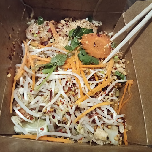 Take-out service was very quick and friendly, but like many of the reviewers have said, the food itself is bland. We had two orders of the Poh Pia rolls, but the glass noodles were under-cooked and hard to swallow. Quite greasy as well. Three orders of Pad Thai - spicy chicken, medium chicken, and a mild prawn. The spicy chicken was kicked up with red pepper flakes, so there was a bit of heat but definitely not a Thai flavour. The other two dishes were the same - lacking the zing you expect from a Thai meal. Apparently the menu has been Canadian-ized, so if you're looking for a mild meal in a very nice atmosphere, this might be for you. If you're a fan of good Thai food, you might want to go...
