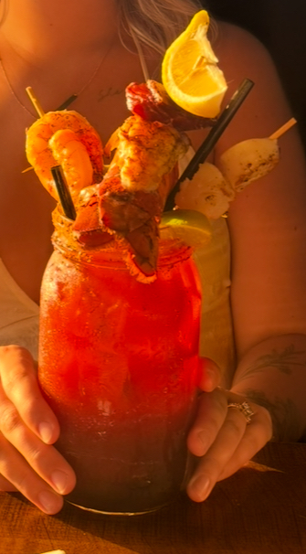 We started our meal by sharing one of their signature Caesars, and it was easily the most luxurious version we’ve ever had. Topped with a lobster tail, shrimp, scallops, and smoked salmon, it was practically a meal in itself — fresh, briny, and beautifully presented. Every bite of seafood was melt-in-your-mouth perfection, and the drink itself was perfectly spiced and balanced.