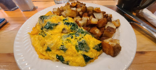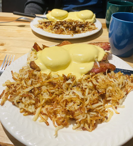 My wife and I stopped here on our way home from a night away. Right away, the hostess greeted us with a loud and firm attitude informing us how to order our food. I appreciated her directness, but I knew immediately that politeness or manners were not her forte. We ordered and seated ourselves. My wife got up to grab some water, but stepped aside to let another older patron walk by. The hostess was behind my wife and made some rude comment about being in way. No 'excuse me' or any indication that she was there. The hostess was delivering food to the table next to where they were standing, but again, there's no need to be rude to your guests. We received our food and it was amazing! It was fresh and delicious. Fantastic portions for the price and quality was great. Hollandaise was on point! Its unfortunate that the whole experience was soured due to poor manners and customer service. When we left, I said thank you to the hostess and she appreciated it. Thats when I saw some Anti Trudeau poster or something. It all made sense. Its probably Justin's fault as to why she is so sour. We probably would have visited this place again if it wasn't for the hostesses attitude or...