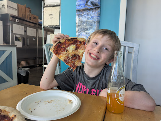 The pizza is really, really good. I have nothing to say that I would want to improve. It comes out hot, so you probably need a couple minutes to let it cool off or you will get a mouth full of napalm. I love it when it arrives right out of the fire. The middle tends to be a little flimsy as Neapolitan tends to be. The crust- crispy with a tender middle and bubbly crumb. Not a single pizza bone was left on a plate. The staff checked in periodically and our daughter thought she would get a box to take the last couple pieces home. After getting the box she continued to finish the pizza, she just couldn’t stop eating it. It’s that good. I also got a 1/2 pint of cherry cheesecake gelato. It was phenomenal. A great way to finish that meal.
