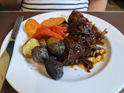 My parents and I stopped in for a late lunch on our way home in late August. We got seated almost immediately and were able to order fairly quickly. But when a large group came in, we were basically ignored and had to wait longer than the large group, who ordered after us, to get our food. All we ordered was a bowl of soup, soup and salad and a thing of chicken fingers and fries. It was frustrating on everyone at the table that while we had ordered sooner than the larger group near us, we had to wait longer for our food. There was another table of three that had to wait even longer than our table, even though they had very likely ordered their food prior to us. I would have understood if the larger group had sat down and ordered prior to us, but orders should be sent out in the order that they are sent in, not by the largeness of a group. And honestly, the tables that had to wait should have something comped on their bills or given a free dessert. If it had been me, I would have paid for my drink and gotten something from the snack shop and ate in Hope instead. I doubt I will want to eat here again. And quite honestly, I could have gotten the exact same meal for a much cheaper price elsewhere.