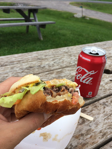 1st time checking it out, when I drive by smells delicious. Had a Chicken BLT and Cheeseburger and small fries. The Chicken burger, average, deep fried like chicken fingers would. Burger was by far the best😊homemade, juicy and char grilled. Tasted like a bbq. Buns nice. The fries where not up to other truck standards. For a small Fry at 5 bucks we hardly had enough for 2 people and it was like we got the scrapes in our order. All tiny pieces of fries. Not a reg size potato in the order. 🤨Place clean and...