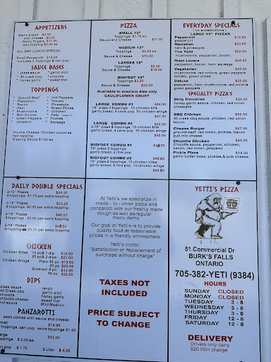 Read moreI'm sure the pizza is awesome, but unfortunately we never got to try it. Staying just outside Burks Falls for a weeks vacation, looked up local pizza, and tried calling to order from 3 different phones from 7 PM until they close at 8pm and no one answered at all for the entire hour. 8pm seems very early closing in summer in a tourist town as well. Maybe this pizza joint doesn't take phone orders and you have to wait there while they cook it? Along way from the apps fast food places are now using for order taking, if even they can't even answer a phone. Lol. Best of luck to them in 2018 and...