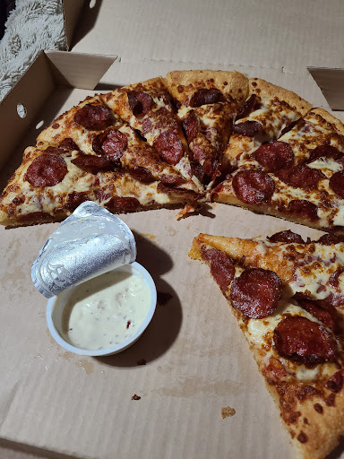 Read moreI went here last night at about 9pm. Two men were standing at cash and one was counting cash (? Don’t they close at 10:45?), one of the men looked at me and yelled “pick up order” and I clarified that I wished to place an order they asked what I would like but did not punch anything in and called out to someone else to assist me. I waited for a couple minutes to be helped at cash and realized a man who was NOT in uniform was walking around the kitchen bickering with people which I found beyond strange. I was approached and asked what I would like by a fairly nice lady but she seemed to be yelling at the random guy to get out. It was very strange. The service was meh but pizza was...