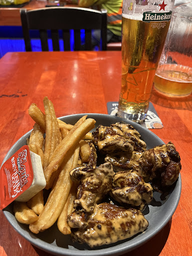 The food was mediocre with soggy, cold nachos as an appetizer. Drinks were okay, watered down but franchises often do that.