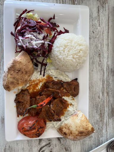 The cashier/chef was a nice guy, polite and welcoming. We ordered mix kebab and as the menu indicated, we expected fresh bread and of course hot and fresh meat and bulgur. The chicken Shish was not cooked enough. The safe cooking temperature for all poultry products, including chicken should be 165 F, which in our case obviously was lower than that. The inside of chicken was a little raw and reddish. Beef Shish was chewy and not easy to cut. That might be due to overcooking or cooking the low quality meat or a wrong cut. The Adana kebab was juicy, tender and delicious. That was probably the best part of our meal. The bread was not fresh as well. I assume he heated up the bread before serving. The salad was a mix of shredded cabbages, lettuce and tomatoes with lemon and pomegranate sauce on top. It was a new taste, but I don’t think I would like to try it again.