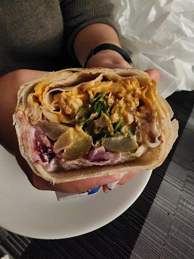 Read moreEdit: went back again for a 3rd time, and this time the owner wasn't there. Ordered 2 medium blue berry flame shwarmas and both were insanely thin and light. Mostly bread. I felt robbed for paying over $30 for 2. My new favorite shawarma joint north of Toronto. The flavors are mind blowing. We tried their blueberry and chicken shwarma wraps. Small size comes in a pita, medium comes in their fantastic Saj bread so we got both mediums. They're similar size, we're told. The blueberry chicken shawarma has blueberry jam and habanero hot sauce to balance the sweetness. It was absolutely perfect and definately my new go-to shawarma. It's stuffed generously and definately justifies the price. Extremely well packed as well. The staff is also very kind and friendly. Felt welcomed the moment we stepped in through the door. We'll be back to try their gyros and chicken...